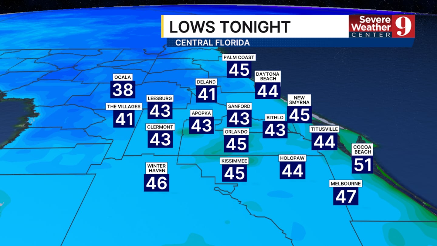 ORLANDO, Fla. — Staying clear and cool tonight. Watching for patchy fog to develop overnight as lows fall into the low to mid 40s.