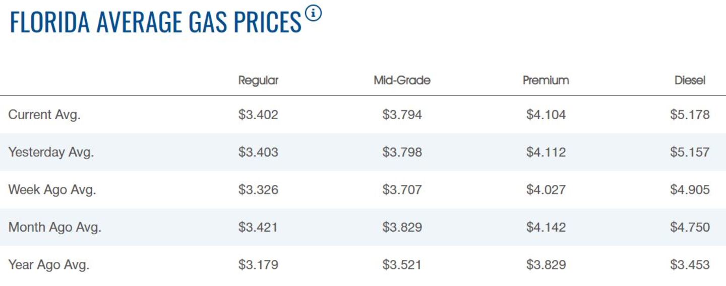 On Monday, Florida drivers will pay an average of $3.40 per gallon — or about $51 to fill up a 15-gallon tank.