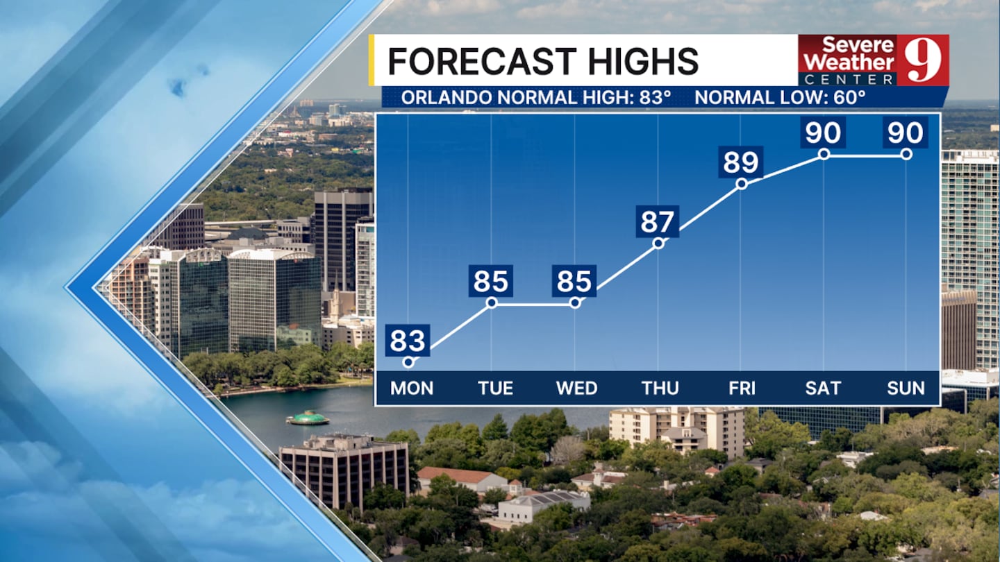 Crimi says we can also expect each day to be warmer than the last, with mid and upper 80s in place by the end of the week.