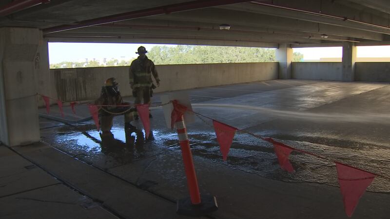 Recruits and instructors used one of the mall’s parking garages to train for high-rise fires.