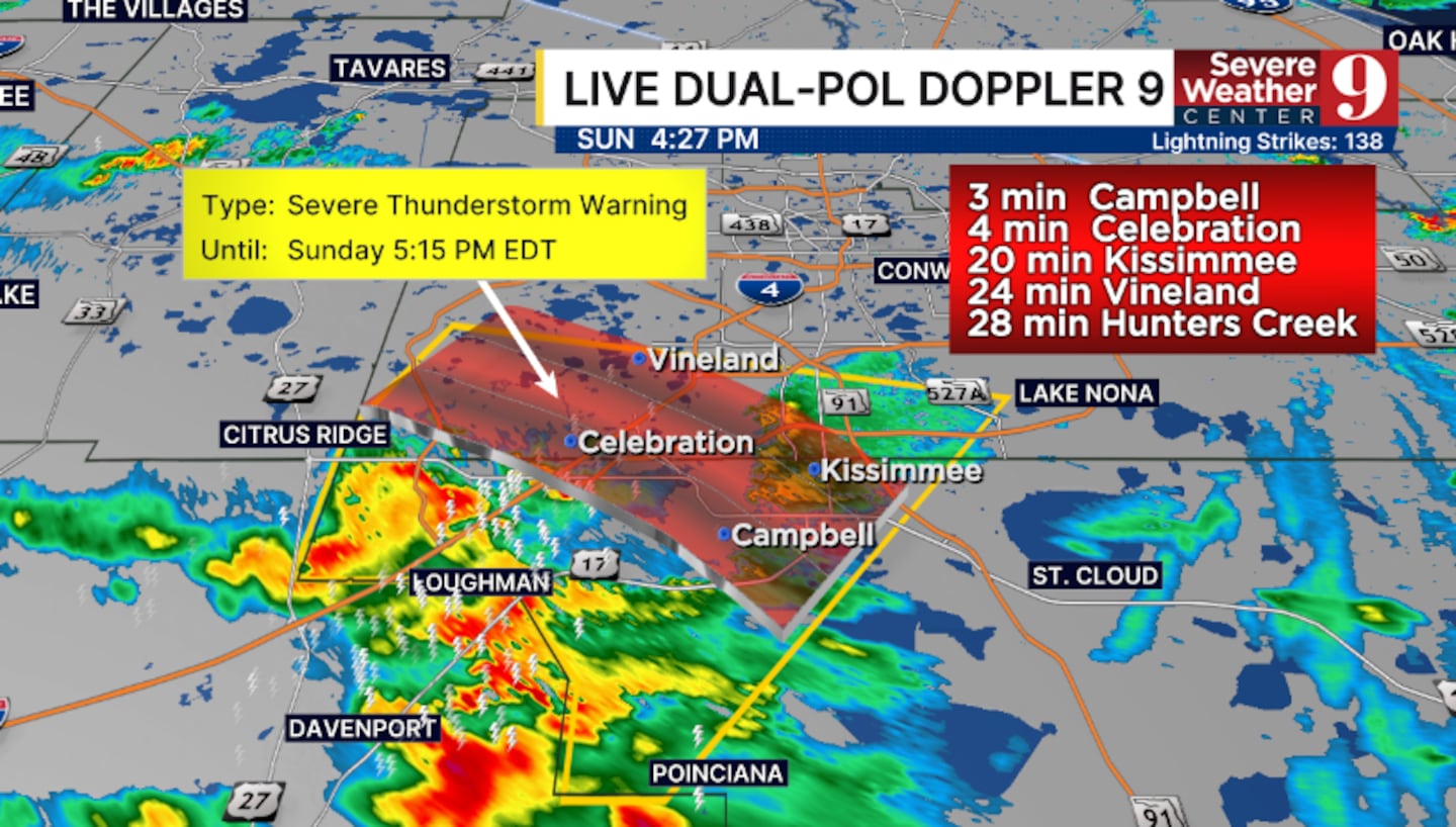A T-Storm Warning has been issued for southwestern Orange and northwestern Osceola counties until 5:15 PM.