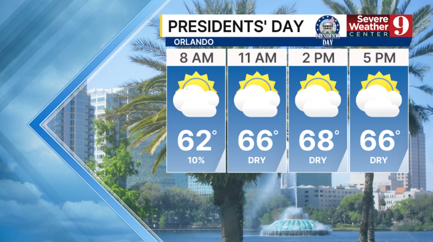 The rain and storms will exit Sunday night, with quieter and cooler weather returning for Presidents’ Day.