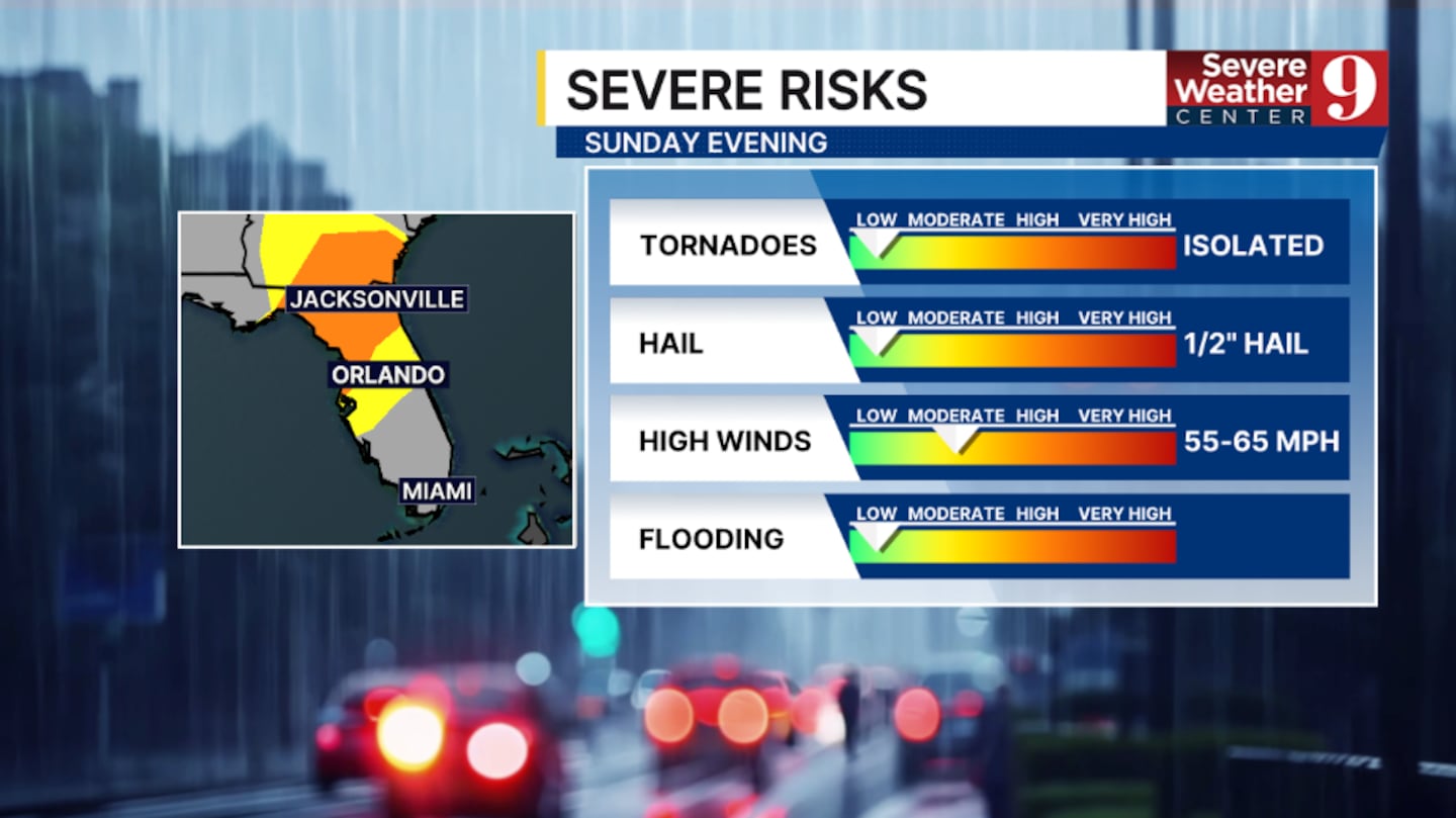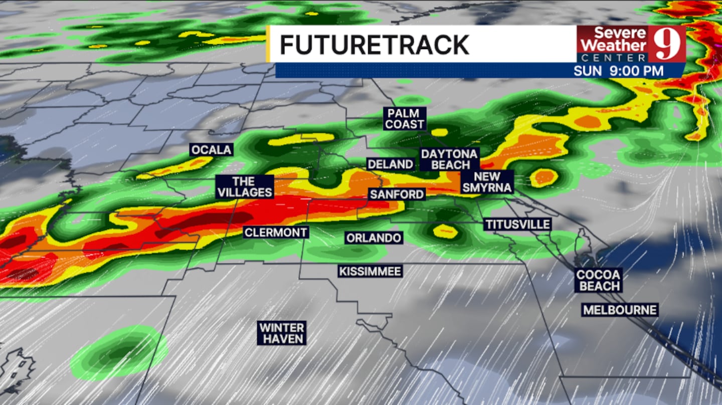 The rain and storms will move quickly through the area, with activity likely arriving along the I-4 corridor around 9-11 pm and exiting south Brevard after midnight.