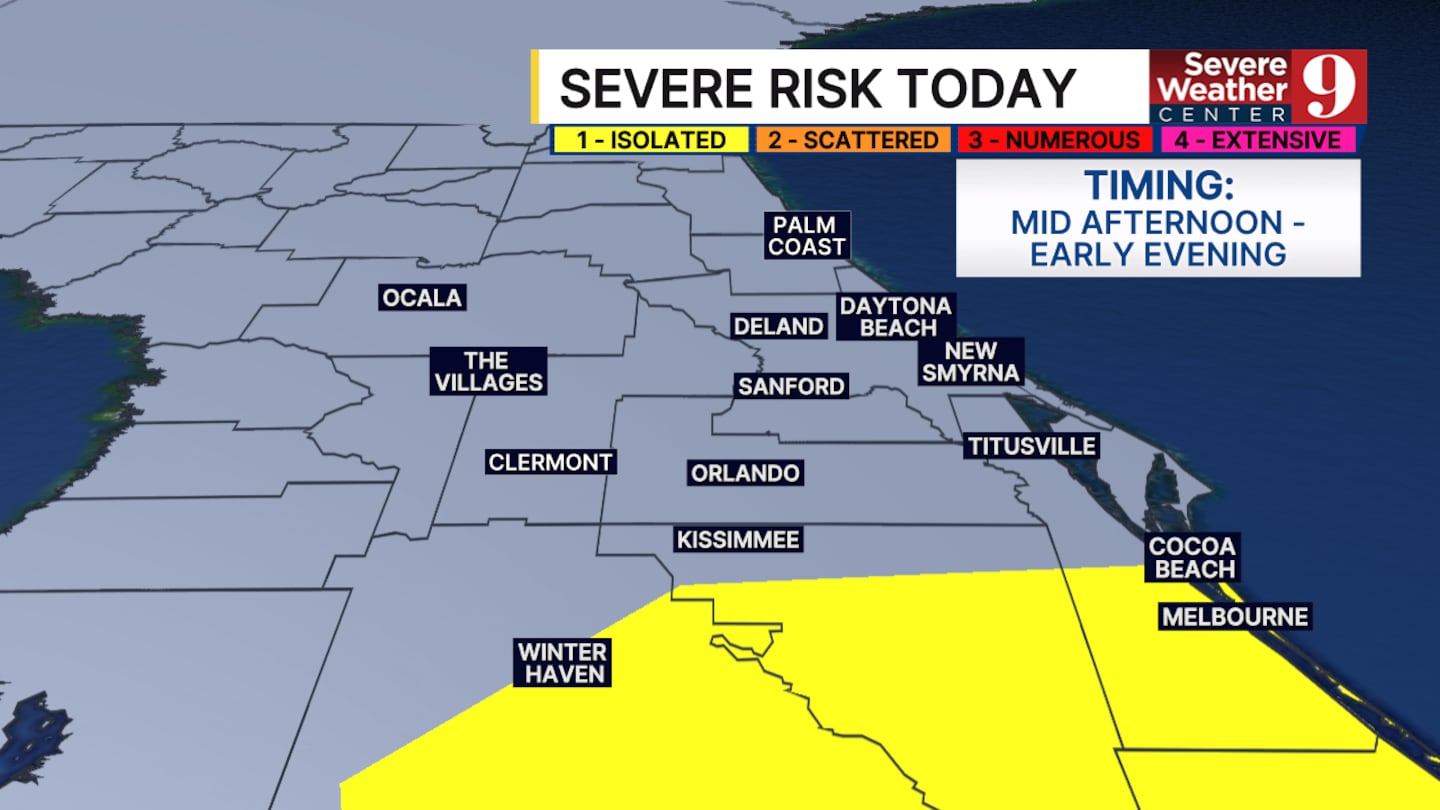 ORLANDO, Fla. — Rain is expected to continue across Central Florida for much of Saturday, with strong to severe storms possible south of Orlando during the afternoon.