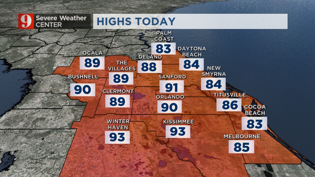 In addition, the sea breezes will move inland today and fire off some showers and storms.