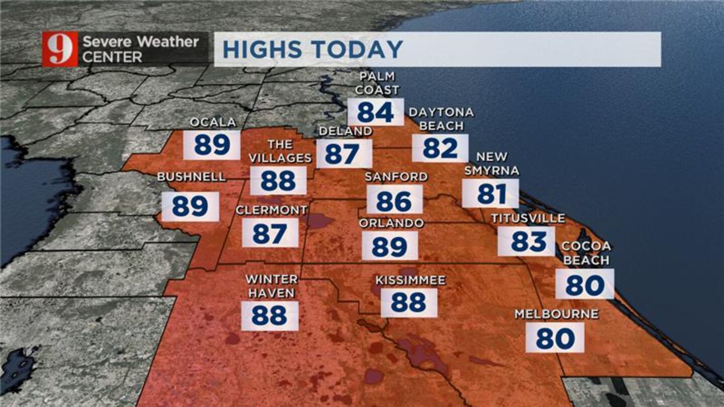 The high temperature in Orlando should reach around 89 degrees Monday.