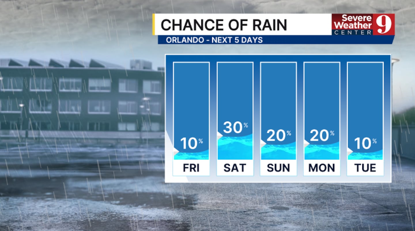 ORLANDO, Fla. — After another day of scattered showers, drier weather is ahead to close out the work week.