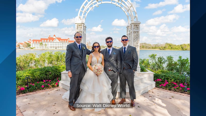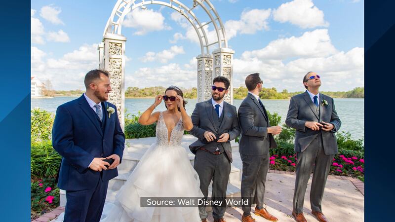 Bride sees color for the first time Kristin Robinson donned special glasses that allow the colorblind to see the world in color before her dream wedding at Walt Disney World. (Walt Disney World)