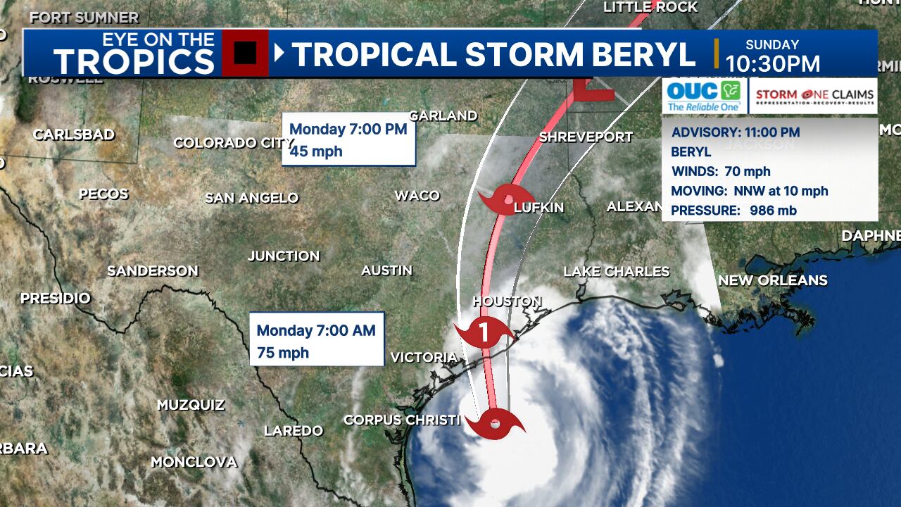ORLANDO, Fla. — Beryl is still a tropical storm as of 11 p.m. Eastern Time.