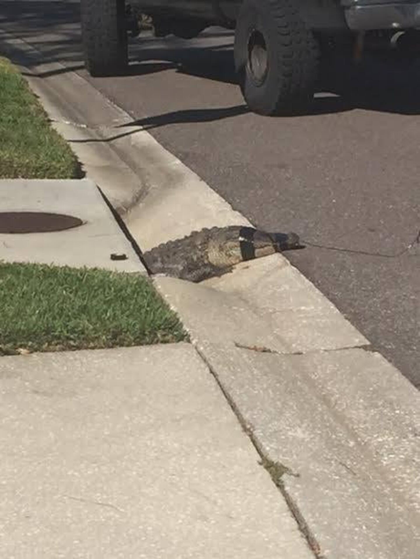 According to Ruel, the gator was spotted on his street, just a few houses down from his home. The gator was trying to climb out of the sewer when it got stuck.