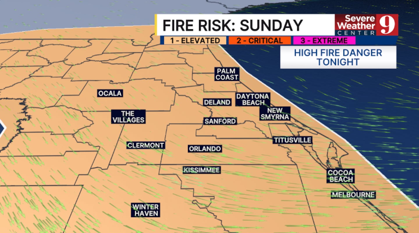 Very dry and cool air is quickly rushing into Central Florida behind a cold front, leading to a very high fire danger.