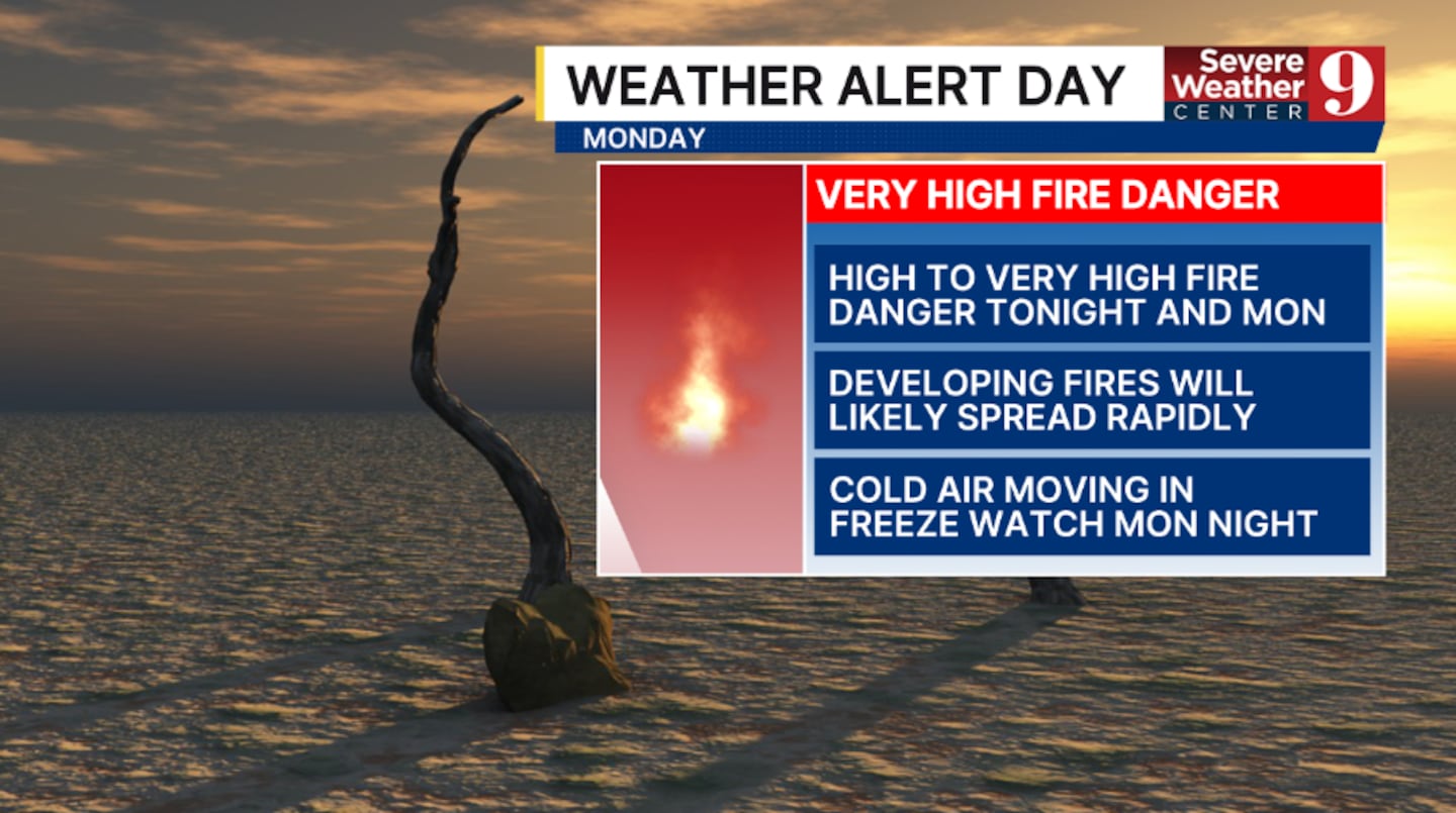 ORLANDO, Fla. — A Weather Alert Day remains in effect for Monday, as the fire threat continues to increase across Central Florida.