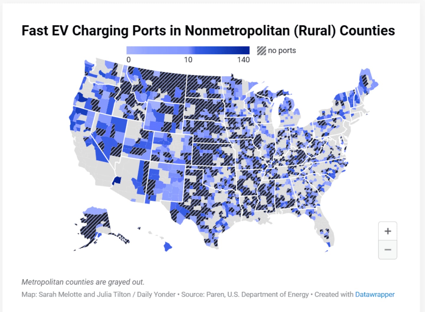 Mapping fast EV ports across rural America reveals ‘emerging charging divide’