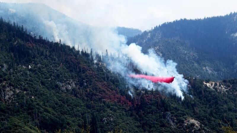 Since the fire is burning in a steep, dense part of the forest, firefighters are mostly using helicopters and air tankers to battle the lightning-caused blaze.