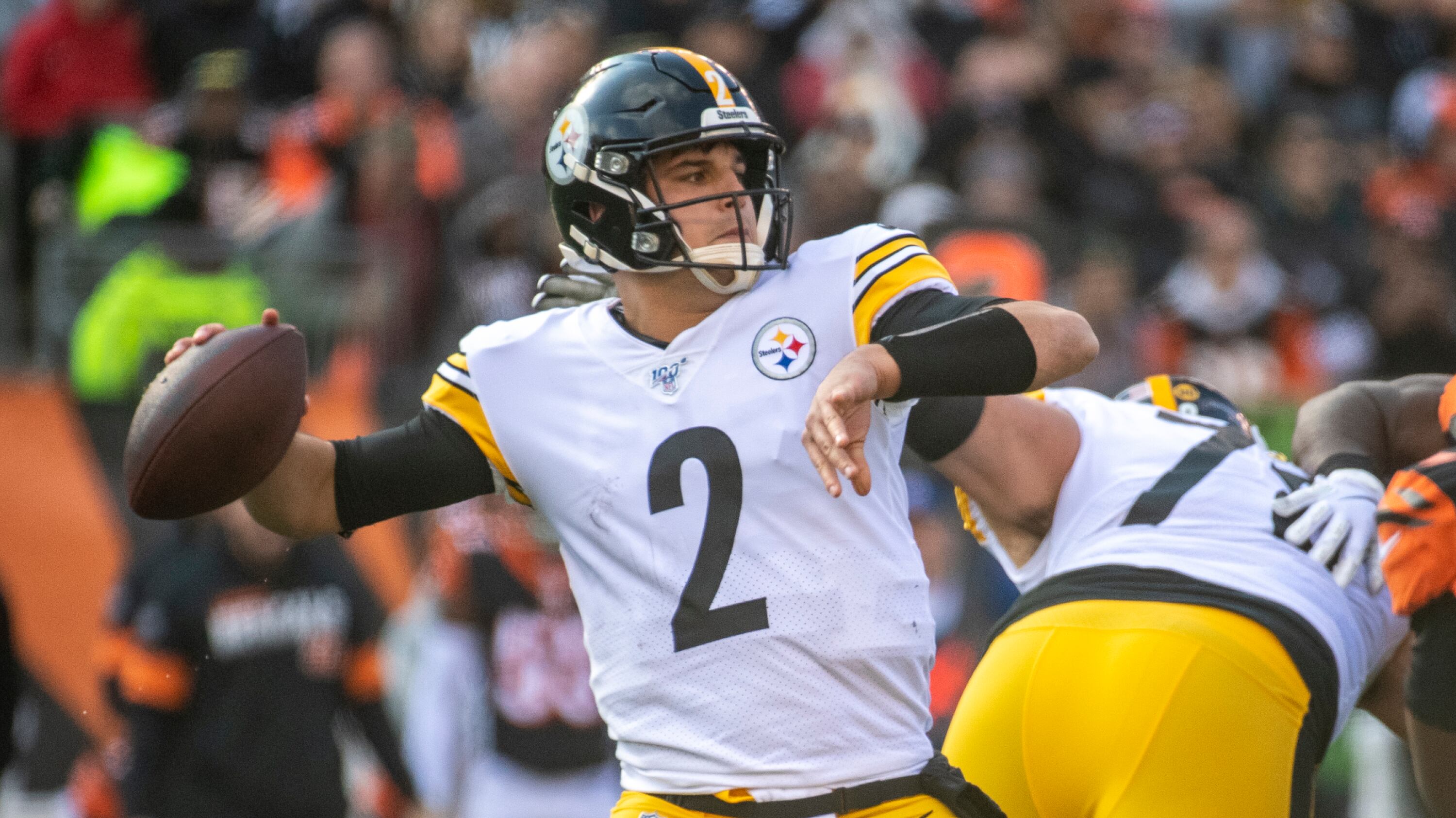 Pittsburgh Steelers v Cincinnati Bengals CINCINNATI, OH - NOVEMBER 24: Mason Rudolph #2 of the Pittsburgh Steelers passes the ball during the second quarter of the game against the Cincinnati Bengals at Paul Brown Stadium on November 24, 2019 in Cincinnati, Ohio. (Photo by Bobby Ellis/Getty Images) (Bobby Ellis/Getty Images)
