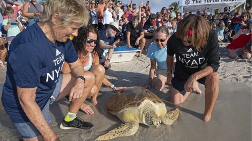 Photos: Diana Nyad marks anniversary of epic Cuba-Florida swim, freeing rehabilitated sea turtle in the Keys