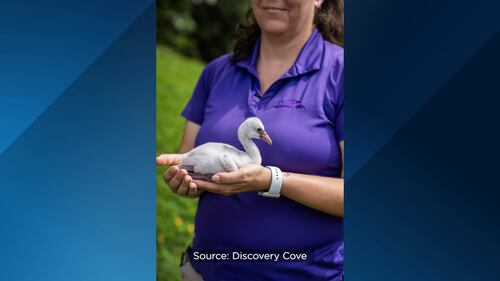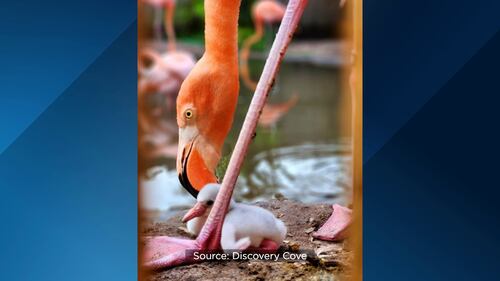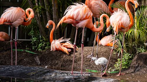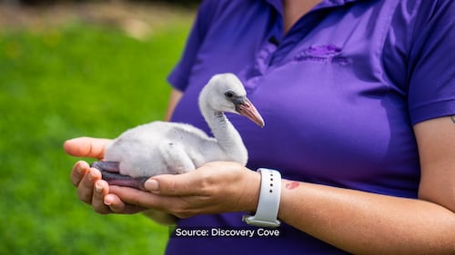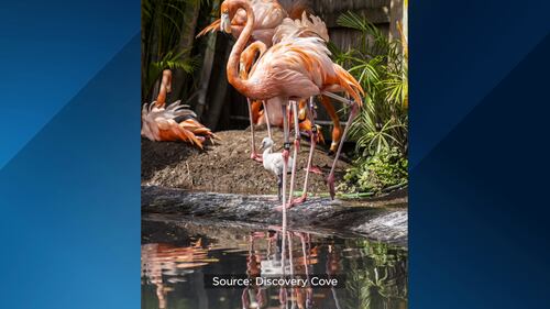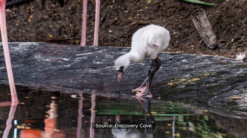 Baby pink flamingo Just in time for National Pink Flamingo Day on Thursday, June 23, Discovery Cove is celebrating the birth of their baby pink flamingo chick. (Discovery Cove)