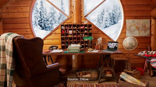 Zillow Santa Claus home listing The Clauses’ secluded North Pole property with a world-class toy shop and whimsical elf village are listed on Zillow, complete with a 3D tour. (Zillow)