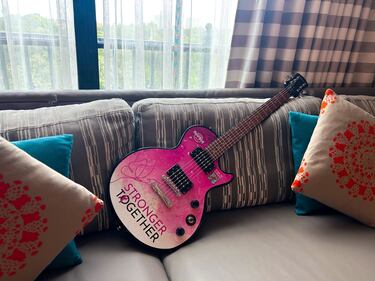 Hard Rock Orlando lights up pink in honor of Breast Cancer Awareness Month Each pink room will have a guitar for guests to jam out. ( Jennifer Hodges/Jennifer Hodges)