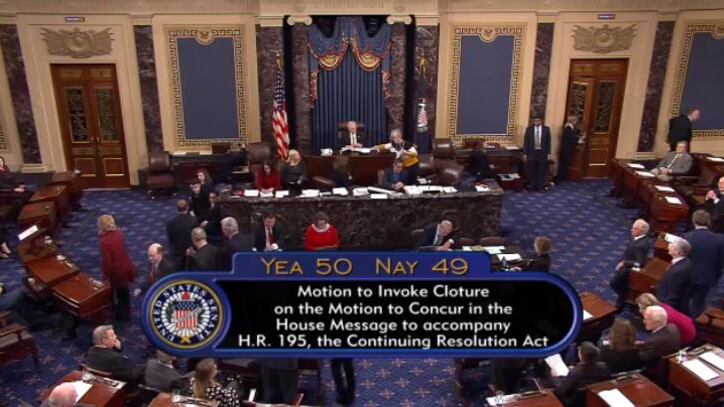 A handful of members from both parties broke with their leaders on the Senate vote, which would have shut off debate on the four week spending measure approved on Thursday by the House.