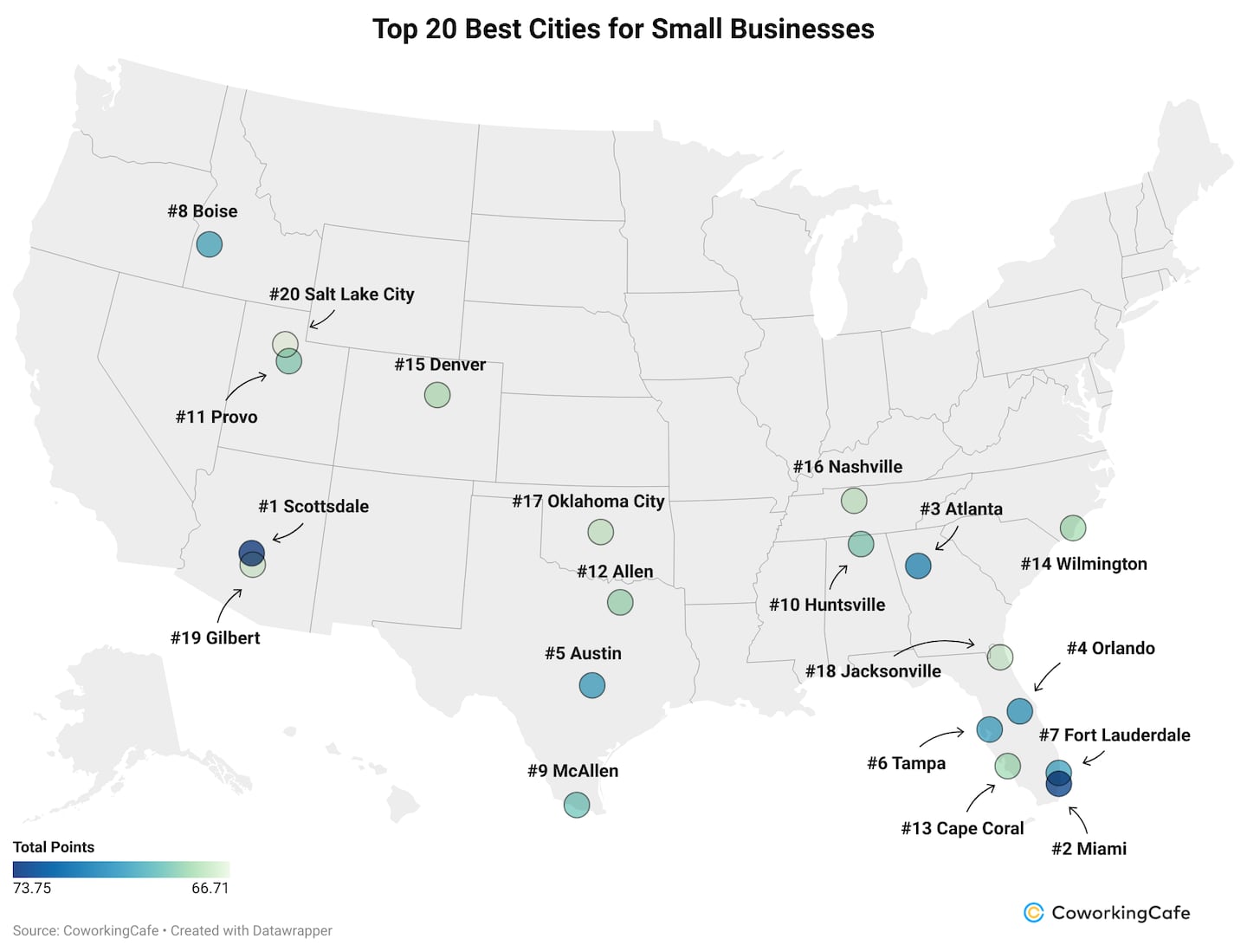 Meanwhile, out West, cities like Denver and Salt Lake City are making a strong case for small business success, and it's no surprise that the top small business hotspot also comes from this region.