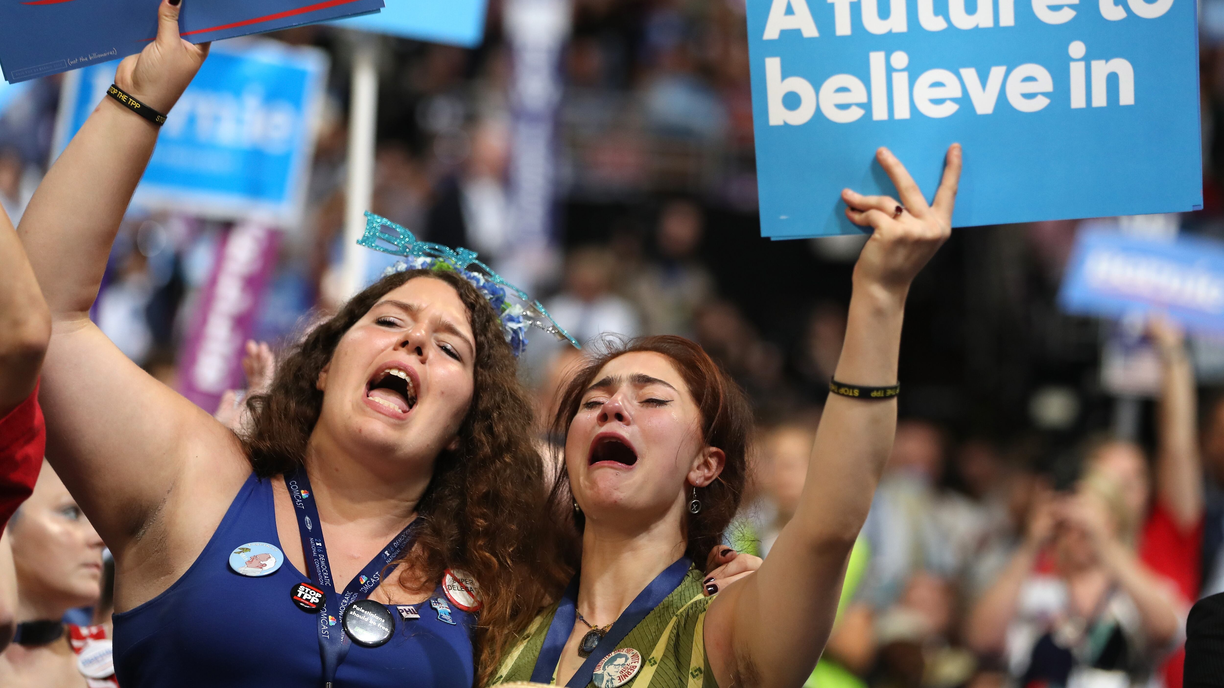 Sanders supporters on the floor in Philadelphia doing their best to hold it together #DemsInPhilly pic.twitter.com/v1Dtwuno54