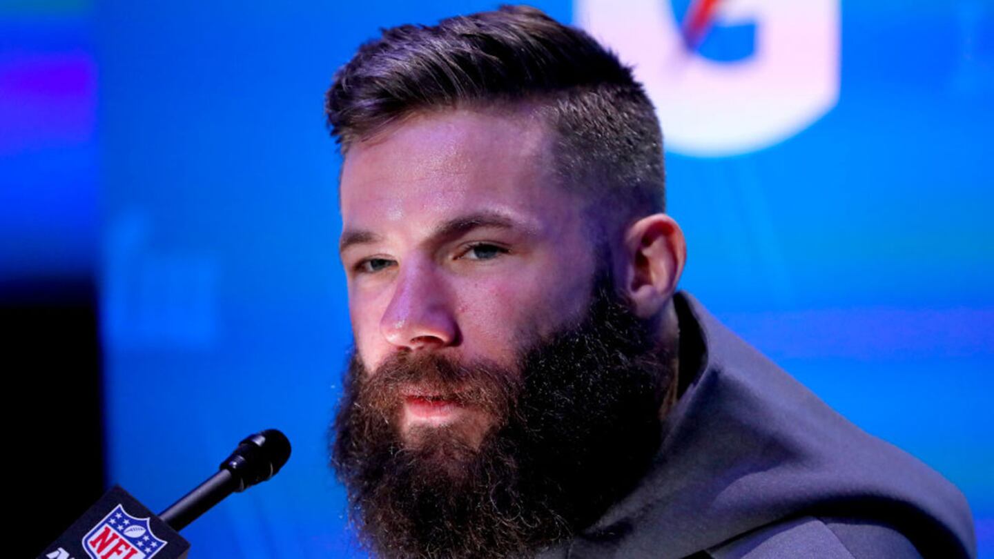 Julian Edelman #11 of the New England Patriots talks to the media during Super Bowl LIII Opening Night at State Farm Arena on January 28, 2019 in Atlanta, Georgia. Photo: Kevin C. Cox/Getty Images