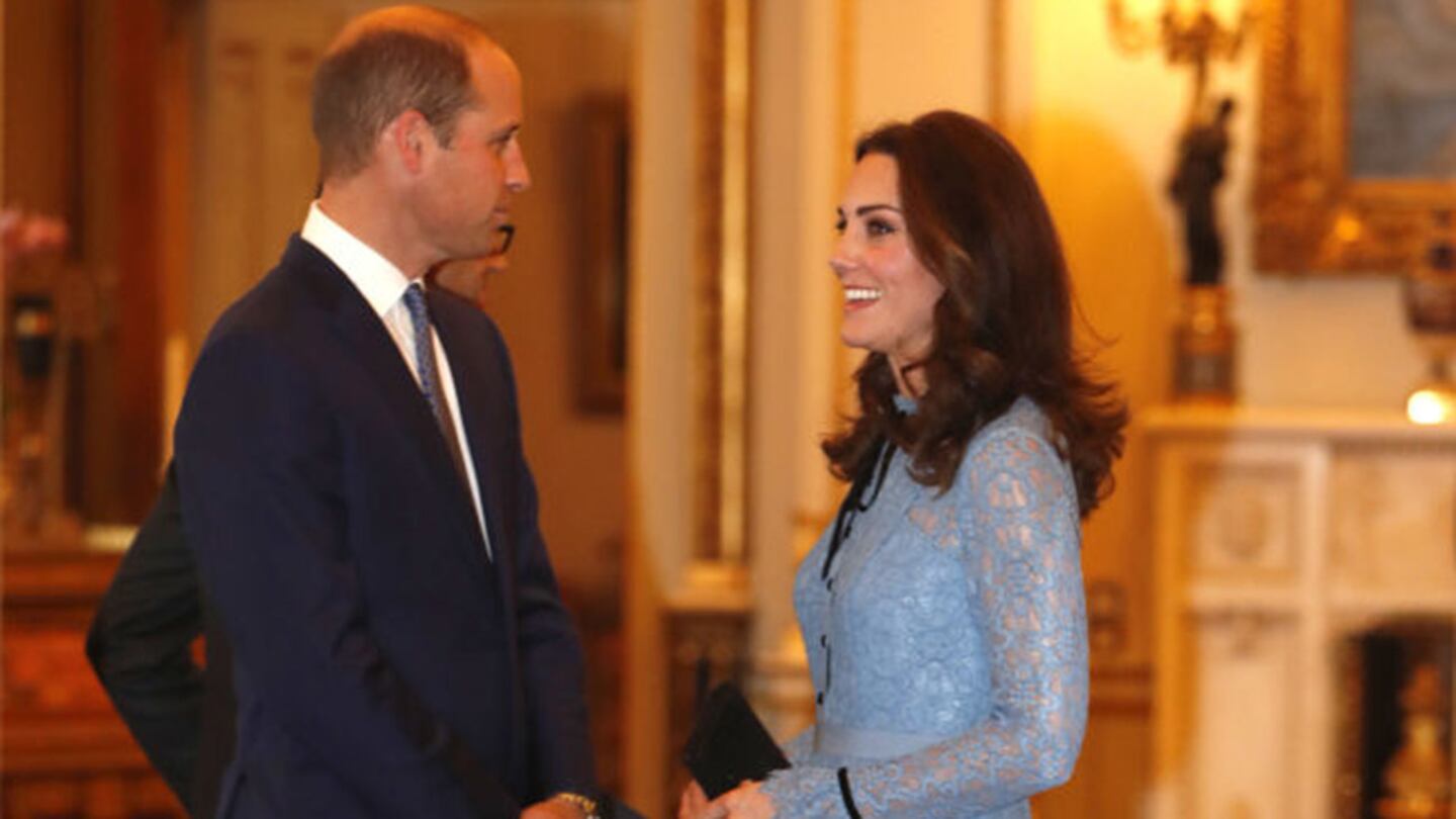 The duchess wore a blue frock and black heels as she attended a reception at St. James Palace, her tiny baby bump on display. The reception marks the first time Catherine has been seen in public since announcing her pregnancy in early September.