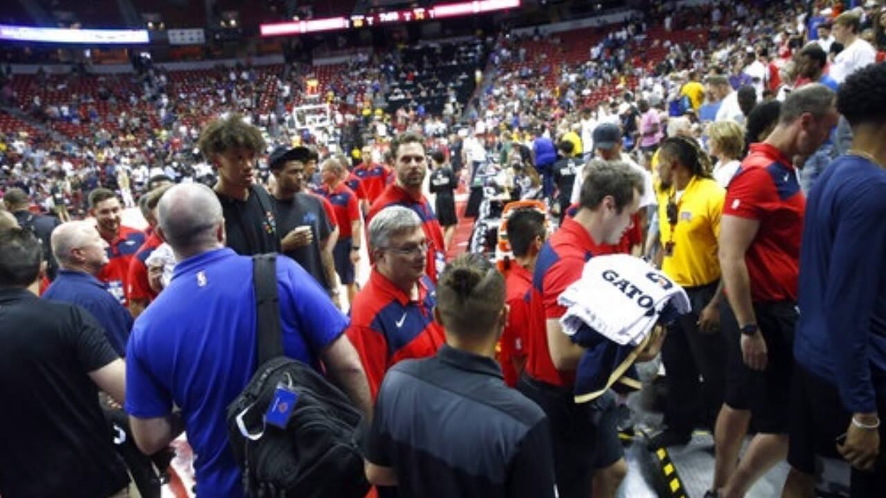 The NBA Summer League game between the New York Knicks and the New Orleans Pelicans in Las Vegas was postponed because of the earthquake. The overhead scoreboard at the Thomas & Mack Center was swaying, and officials elected to delay the game and have the teams leave the floor while gauging if it was safe to continue.