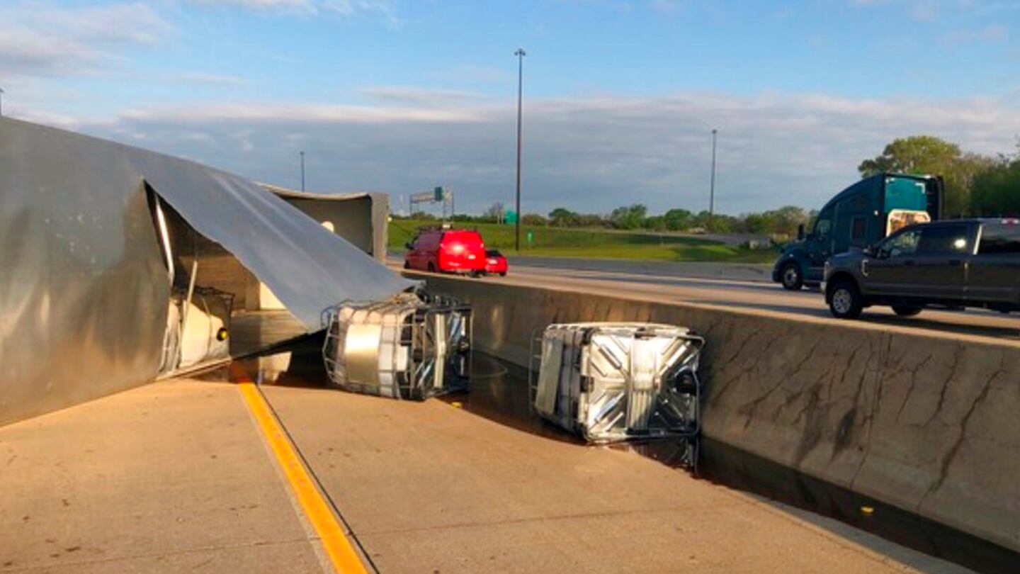 HAMMOND, Ind. — Traffic was backed up along a highway in Indiana for hours after a semitruck carrying 41 tons of honey lost control and spilled containers on to the roadway.