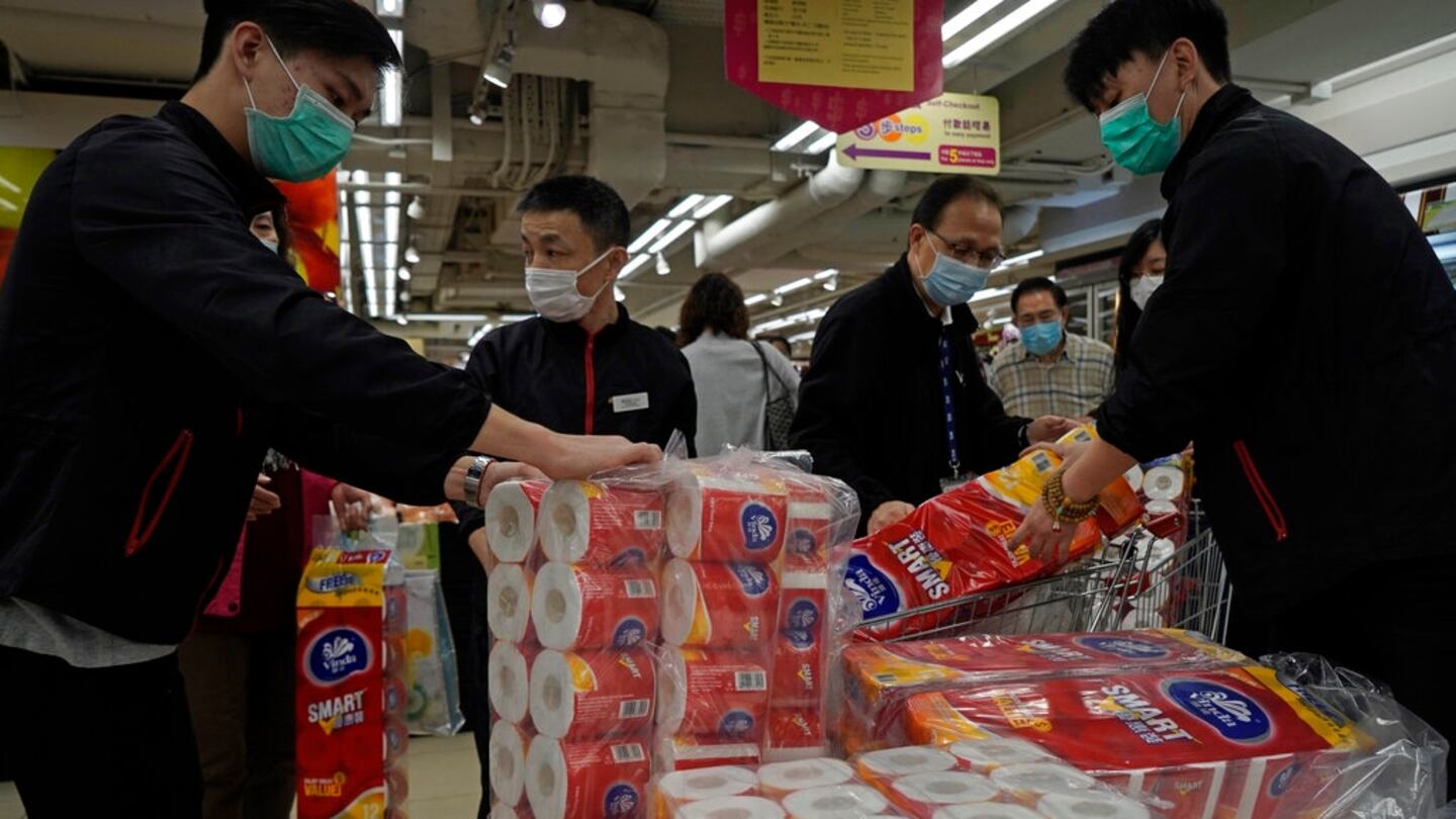 Stores in Hong Kong have been running out of toilet paper, and people will stand in long lines when a new supply arrives.