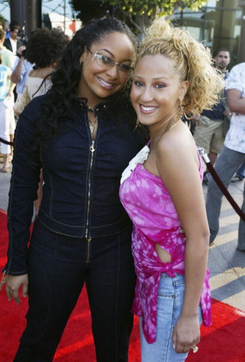 Photos: Adrienne Bailon through the years 2004: American actress and singer Raven poses with actress Adrienne Bailon as they arrive for the Disney Channel Original Movies Los Angeles premiere of "Tiger Cruise" held on July 27, 2004, at the Directors Guild of America in Hollywood, California. (Frazer Harrison/Getty Images)