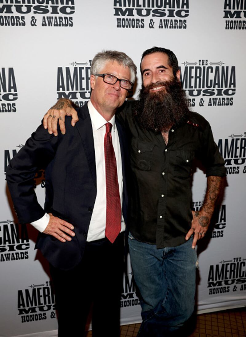Photos: Americana Honors & Awards 2022 red carpet Jed Hilly and JP Harris are seen backstage during the 21st annual Americana Honors & Awards at Ryman Auditorium on September 14, 2022, in Nashville, Tennessee. (Terry Wyatt/Getty Images Americana Music Association)