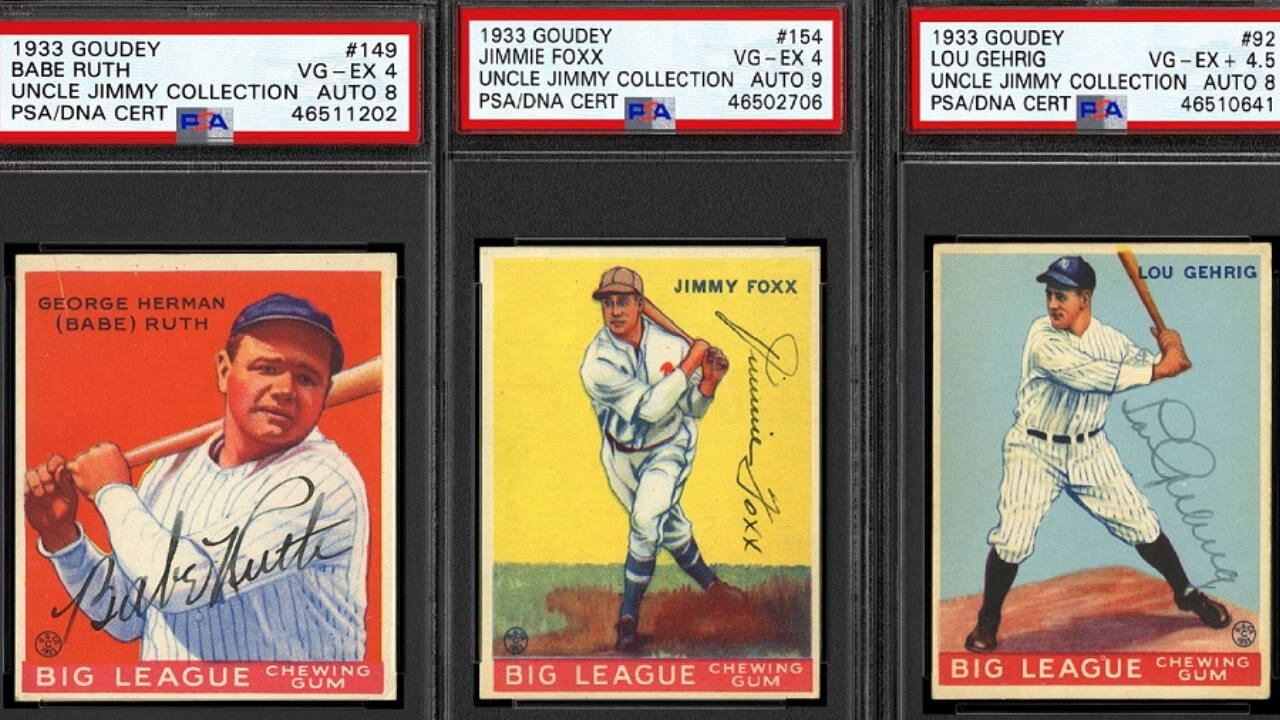 When James Micioni of Boonton, New Jersey, died March 8, the 97-year-old left a baseball card collection in his attic that was staggering. Accumulated over 80 years, Micioni’s collection included more than 1,000 vintage cards, including six different 1933 Goudey cards of Babe Ruth -- valuable in their own right -- but signed by the Sultan of Swat, which makes the cards worth even more.