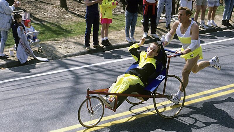 Rick Hoyt: The athlete, who was pushed in his wheelchair by his father in more than 1,100 road races, including 32 Boston Marathons, died May 22. He was 61. (Heinz Kluetmeier/Sports Illustrated via Getty Images)