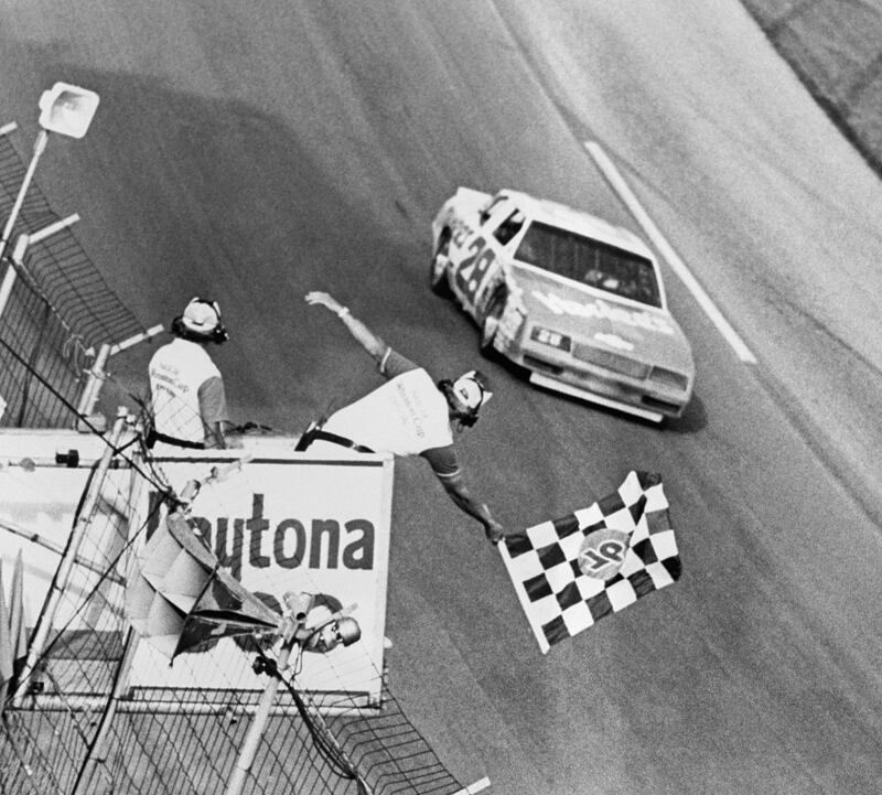 Cale Yarborough: Cale Yarborough takes the checkered flag to win the Daytona 500 in 1984. (Bettmann/Bettmann Archive)