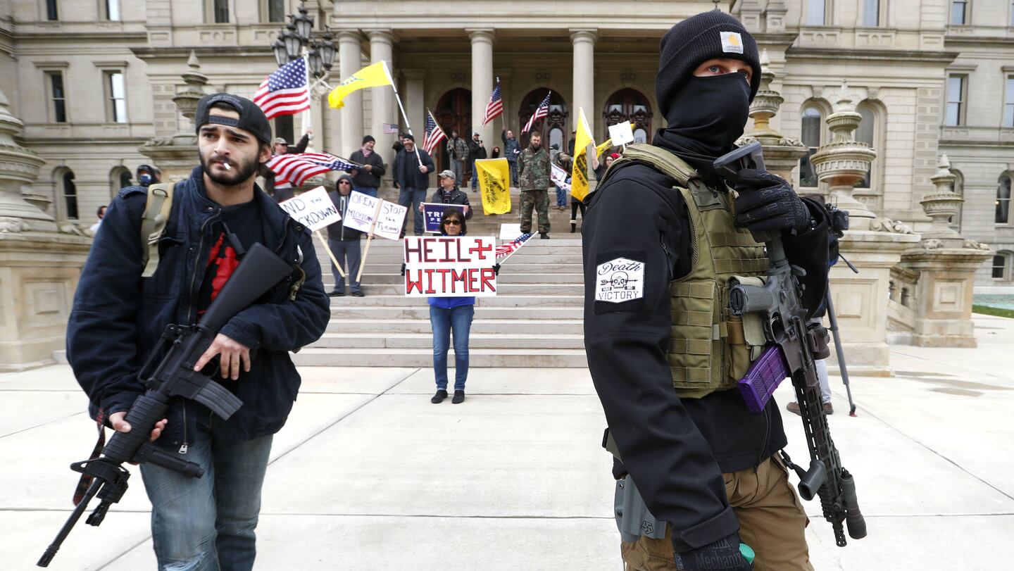 Hundreds of people -- few wearing masks but many armed with semi-automatic rifles -- swarmed the Michigan Capitol Thursday in protest of Whitmer’s strict guidelines.