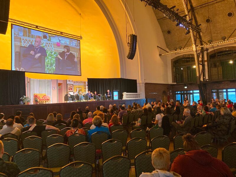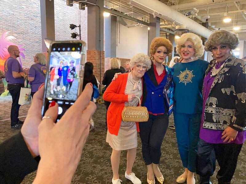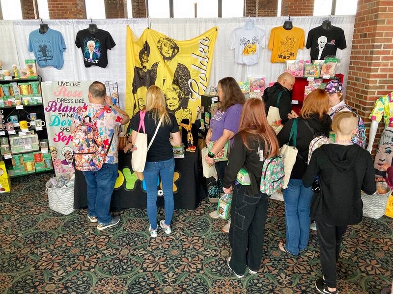 The conference also features a vendors’ market with booths carrying “Golden Girls”-themed candles, masks, T-shirts and other merchandise. Fans can snap photos in a recreation of the kitchen where the “girls” always ate cheesecake as well as a giant replica of Sophia’s trademark purse.