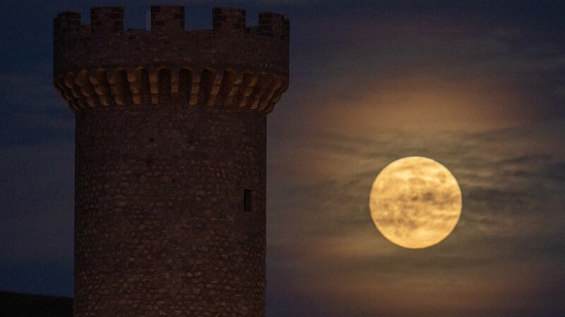Photos: October 2021 Hunter's Moon brightens the night sky An almost full moon of October, known as Hunter's Moon, rises over the cooling towers of the Trillo Nuclear Power Plant in Guadalajara, Spain. (Marcos del Mazo/LightRocket via Getty Images)