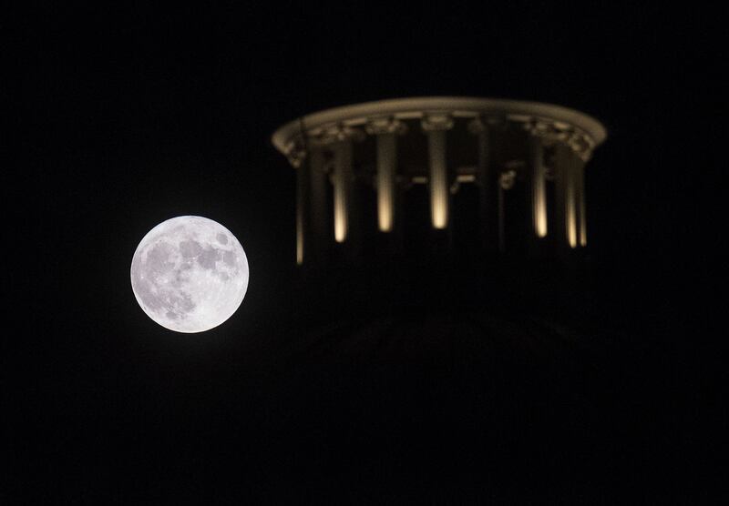 Photos: October 2021 Hunter's Moon brightens the night sky This photograph taken on October 20, 2021, shows a full moon rising over Skopje. (ROBERT ATANASOVSKI/AFP via Getty Images)