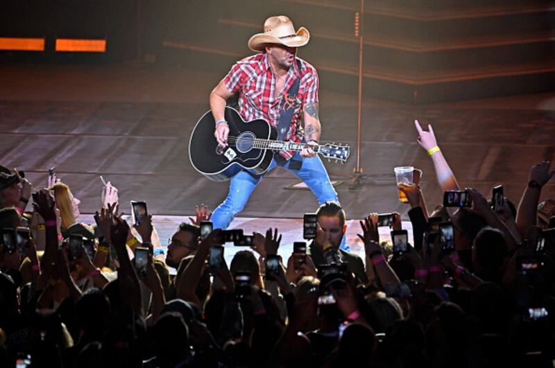 Concert cut short FILE PHOTO: Jason Aldean performs on stage during day three of CMA Fest 2023 at Nissan Stadium on June 10, 2023 in Nashville, Tennessee. Aldean had to cut a concert short after he fell ill because of the heat. (Photo by Jason Kempin/Getty Images) (Jason Kempin/Getty Images)