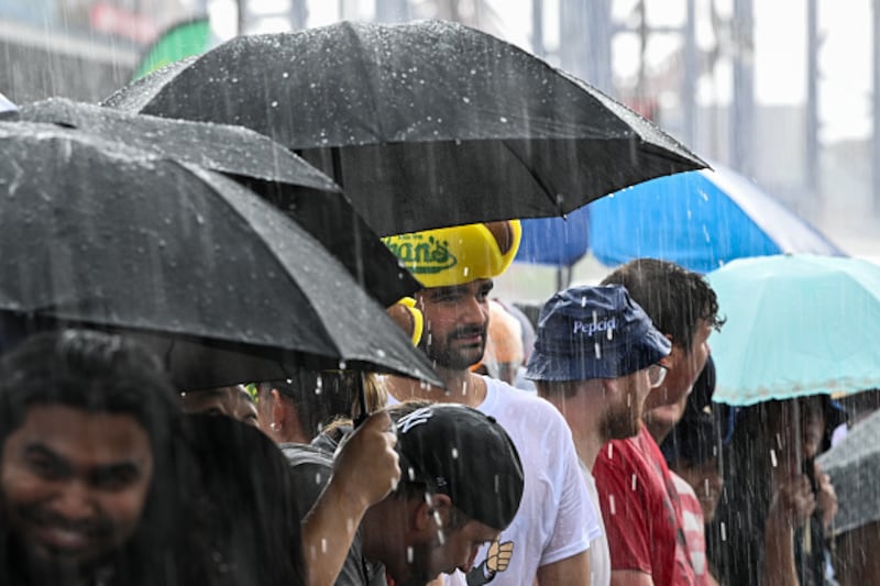 Nathan's Annual Hot Dog Eating Contest NEW YORK, NEW YORK - JULY 04: Spectators take cover as a thunderstorm hits before the men's competition during the 2023 Nathan's Famous Fourth of July International Hot Dog Eating Contest at Coney Island on July 04, 2023 in the Brooklyn borough of New York City. The NYPD ruled it would be unsafe to continue the event outdoors in the rain with spectators. The annual contest, which began in 1972, draws thousands of spectators to Nathan’s Famous located on Surf Avenue. (Photo by Alexi J. Rosenfeld/Getty Images) (Alexi Rosenfeld/Getty Images)