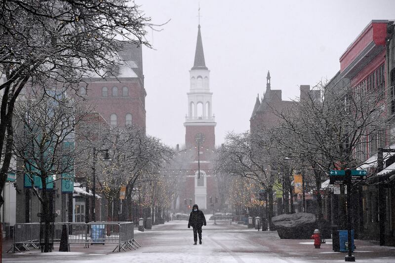 Photos: Late winter storm blasts South, Northeast A man walks through Church Street Marketplace during a snowstorm, Saturday, March 12, 2022, in Burlington, Vt. (AP Photo/Jessica Hill)