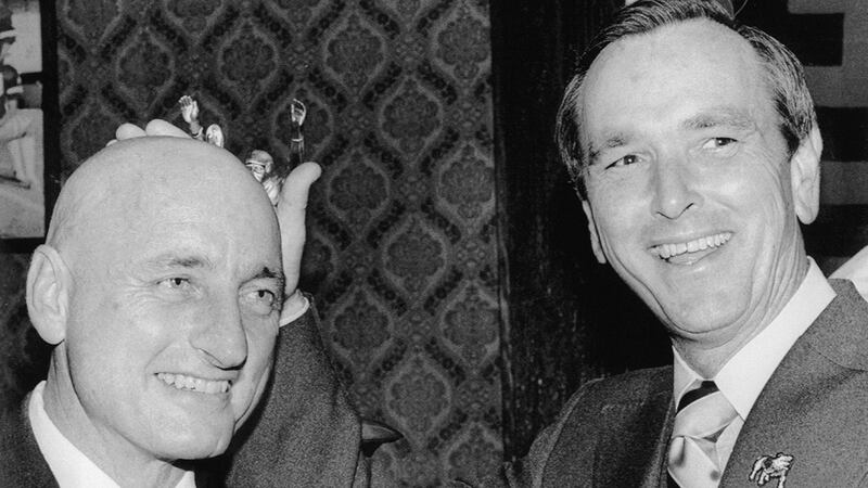 Photos: Vince Dooley through the years 1976: Vince Dooley, head football coach of the University of Georgia, receives a pat on his newly shaved head from Gov. Busbee at the SEC Coronation party in Athens. Dooley kept his promise to shave his head when the Bulldogs won the SEC and Georgia championships. (Bettmann/Bettmann Archive via Getty Images)