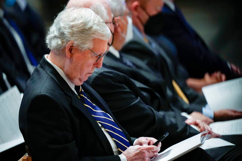 Madeleine Albright memorial Senate Minority Leader Mitch McConnell of Ky., attends a funeral service for former Secretary of State Madeleine Albright at the Washington National Cathedral, Wednesday, April 27, 2022, in Washington. (AP Photo/Andrew Harnik) (Andrew Harnik/AP)