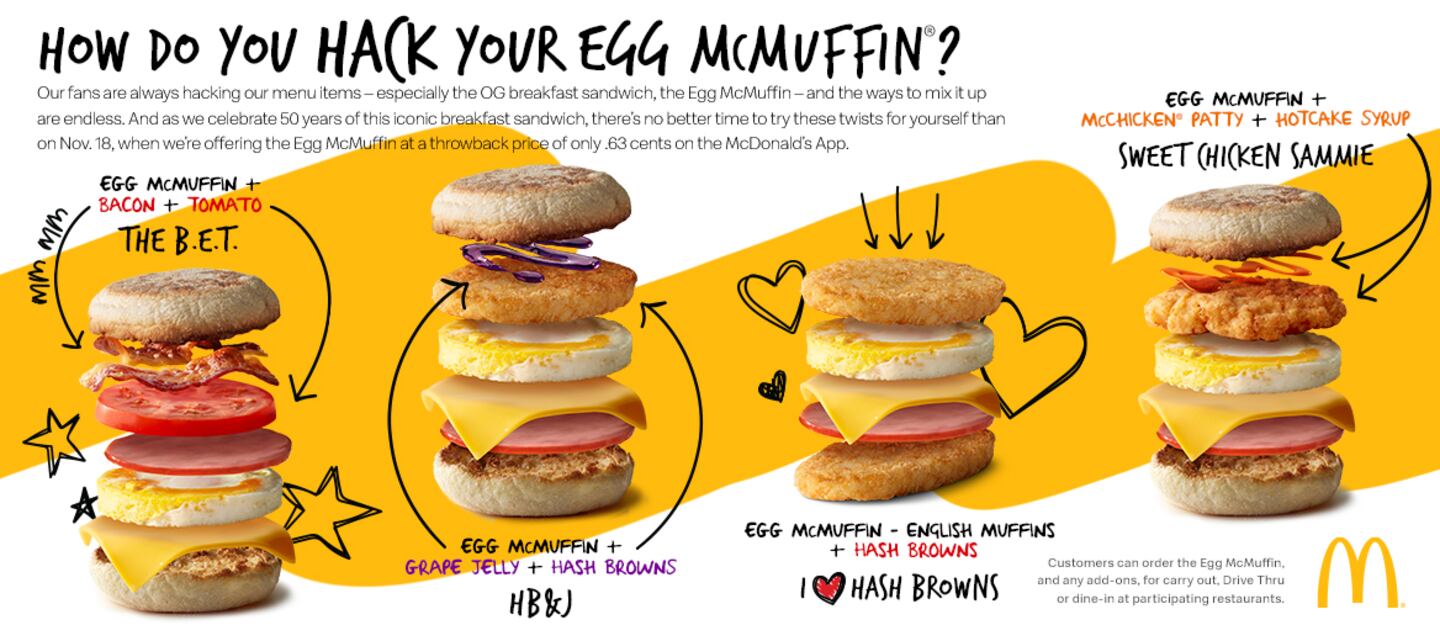 Customers won’t be limited to the original Egg McMuffin on Thursday. Fans will also be invited to try Egg McMuffins with bacon and tomato, or with grape jelly and hash browns.