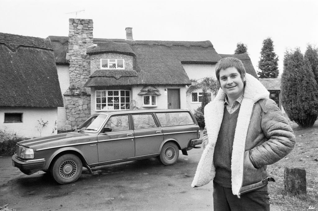 November 1982 Black Sabbath singer Ozzy Osbourne pictured outside his new house, beside his Volvo car. Picture taken 18th November 1982. (Mirrorpix/Getty Images)
