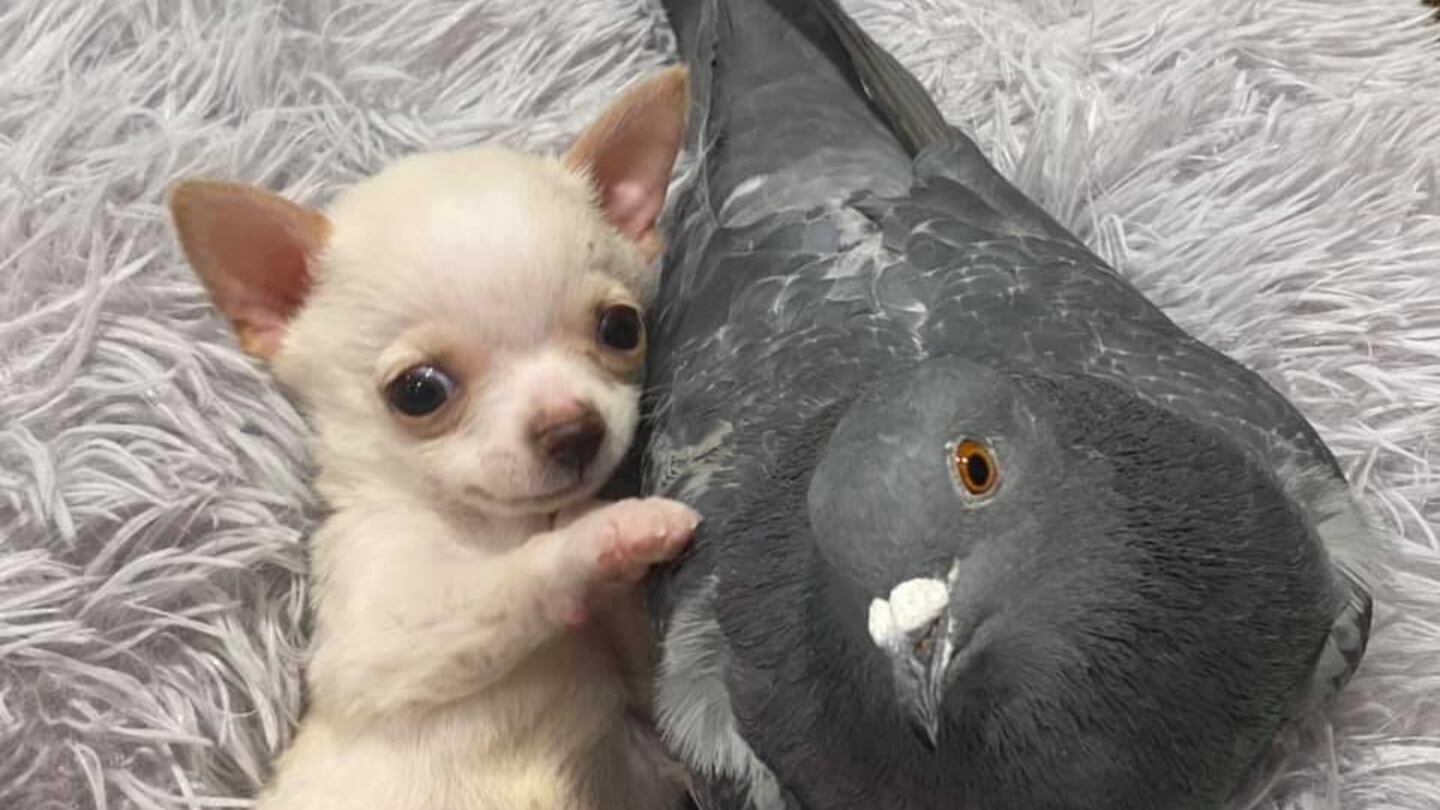 HILTON, N.Y. — A pigeon that can’t fly and a dog that can’t walk posed for some positively adorable photos, a New York animal shelter shared on social media.