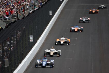 2023 Indy 500: Polesitter Alex Palou leads the pack during the 107th Running of the Indianapolis 500. (James Gilbert/Getty Images)