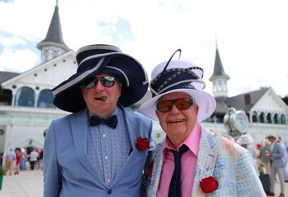 150th Kentucky Derby: Spectators pose for a picture on the grounds ahead of the running of the 150th Kentucky Derby at Churchill Downs. (Kevin C. Cox/Getty Images)